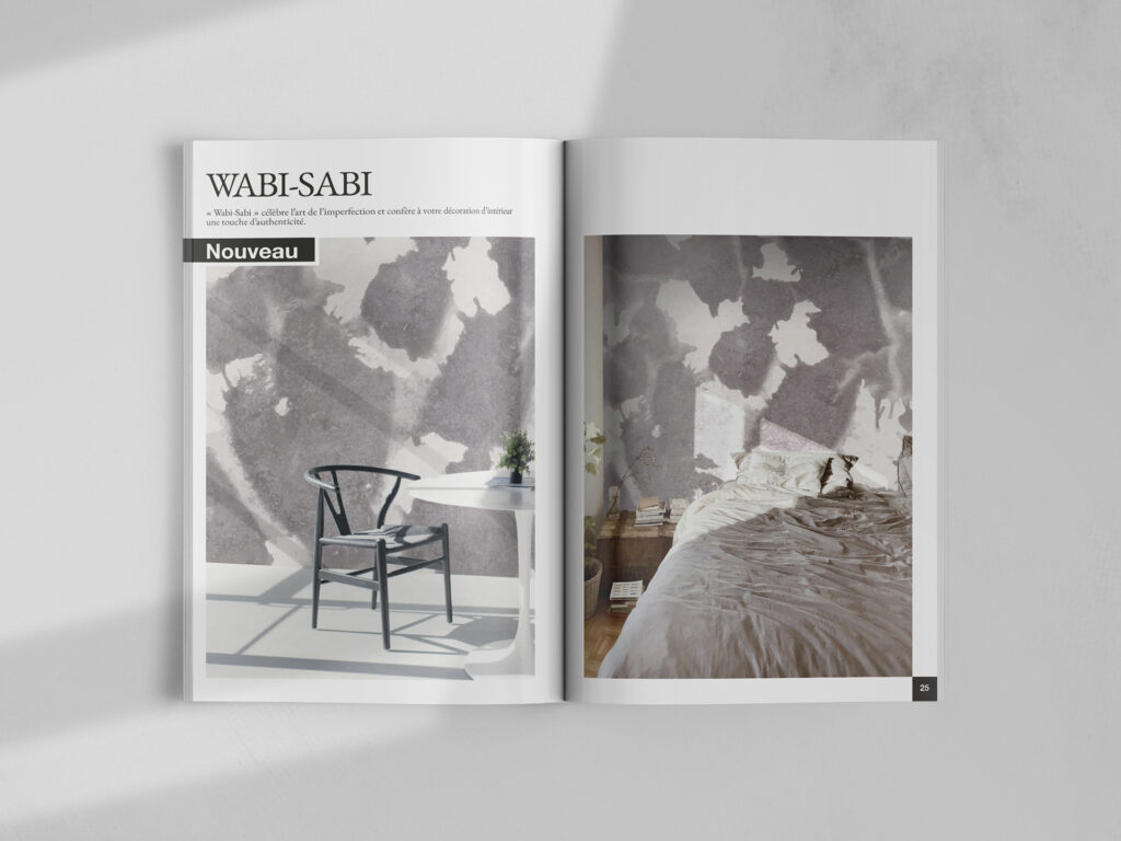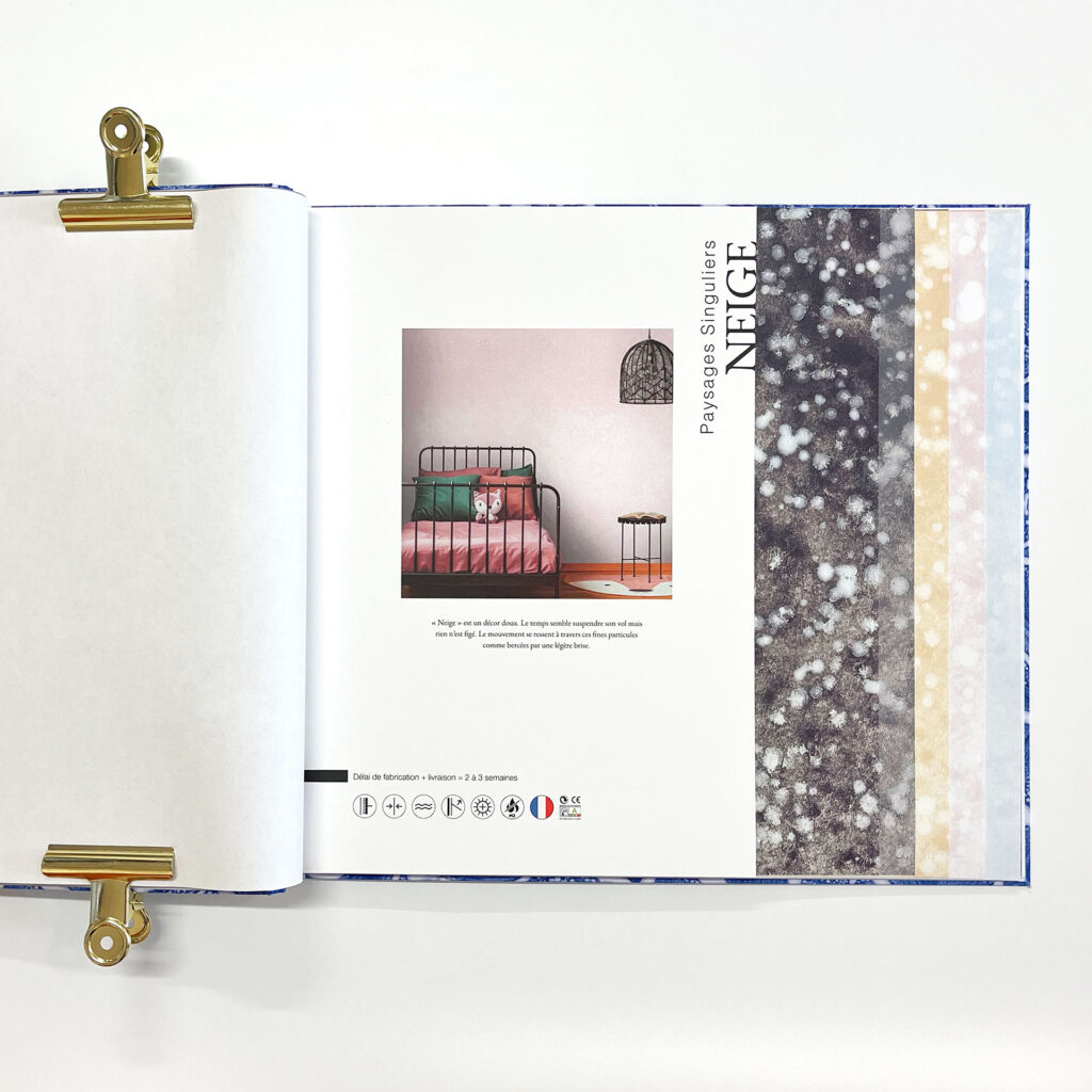 J’ai donc été interrogé pour la création et le design de ces outils : un magazine présentant la gamme complète, un packaging pour la colle, des cartes postales pour la communication, les nouvelles carte de visite, le book des échantillons de papier-peints…