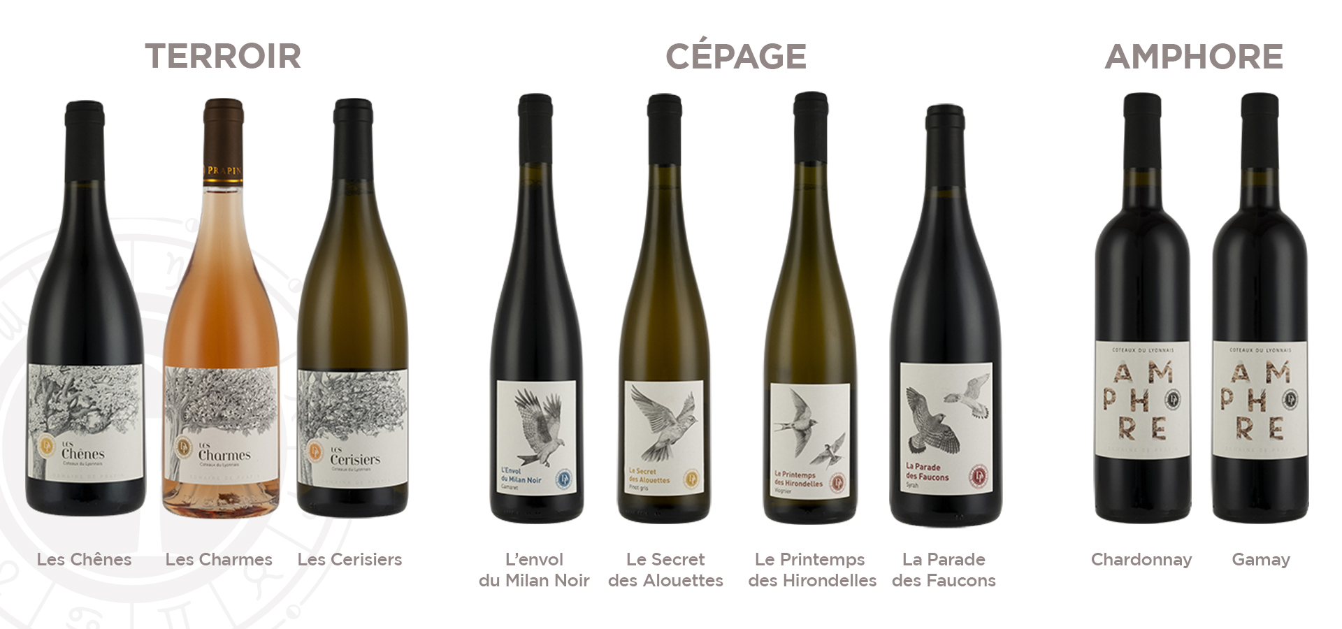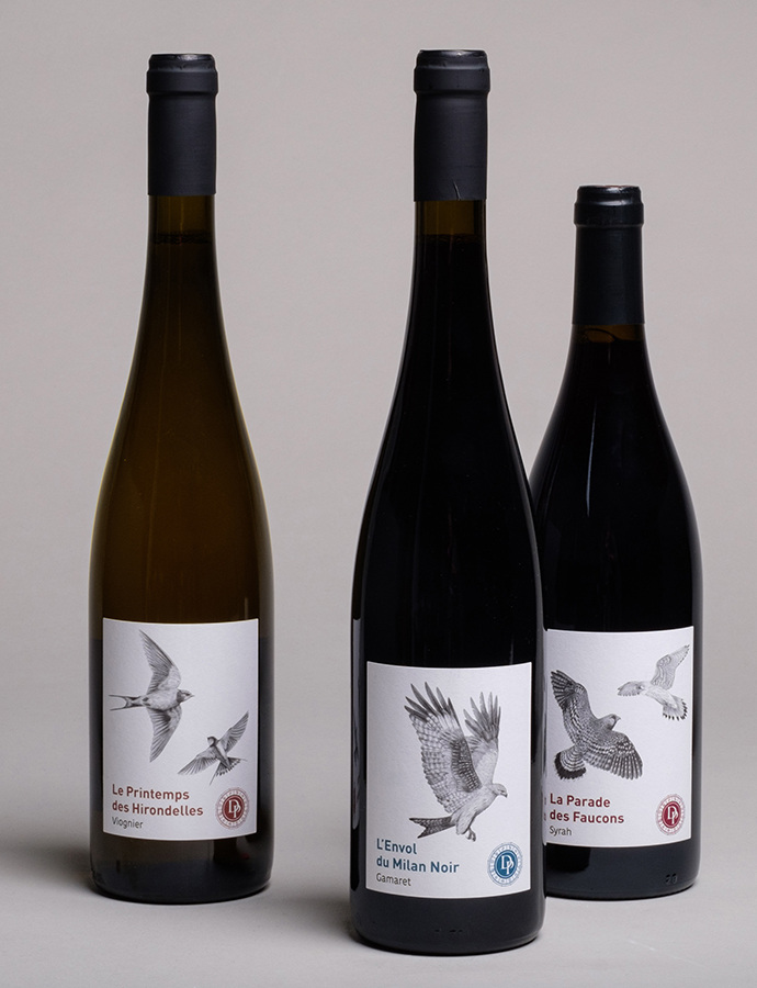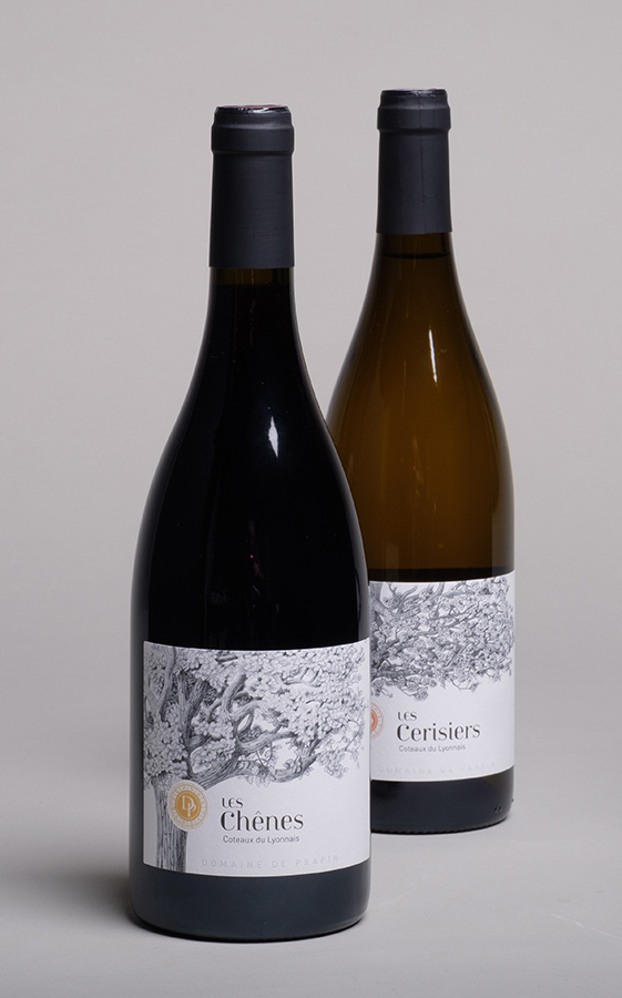 Pour cela, j’ai réalisé des illustrations détaillées d’oiseaux, d’arbres et de pieds de vigne. Chaque étiquette raconte une histoire, celle du mariage entre la nature et le savoir-faire ancestral des vignerons du Domaine de Prapin. Les oiseaux symbolisent la liberté et la légèreté du vin, les arbres représentent la force et la longévité, et les pieds de vigne incarnent le cœur et l’âme du vignoble.
